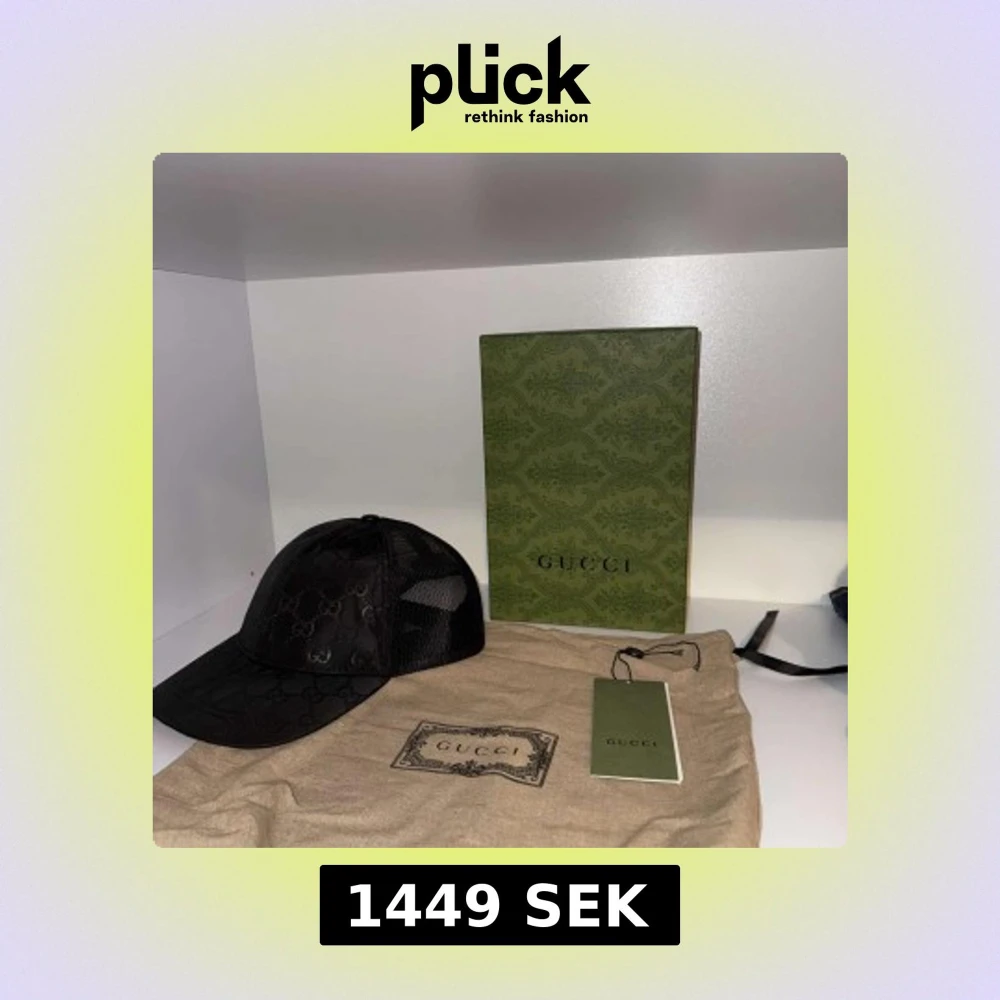 Snygg svart keps från Gucci med klassiskt GG-mönster i blankt tyg framtill och mesh på sidorna och bak. Justerbar snapback och diskret Gucci-logga baktill. Perfekt för dig som vill ha en lyxig och trendig accessoar. Storlek: 57cm. Använd fåtal gånger, priset kan diskuteras. Limited edition modell.