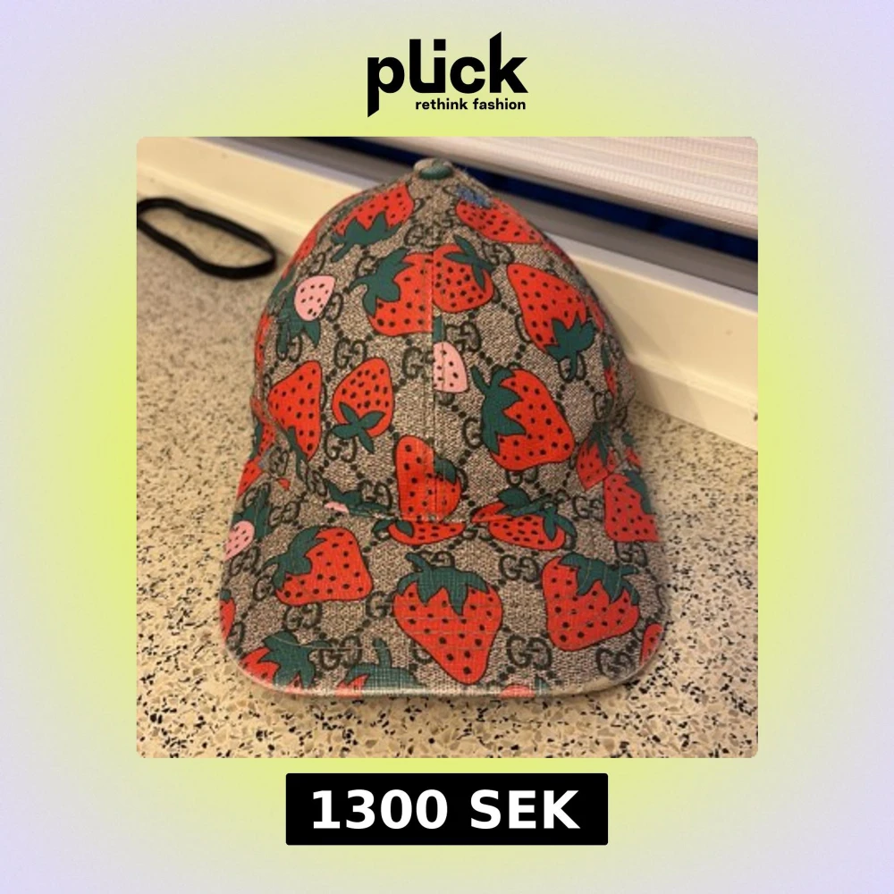 Cool keps från Gucci med färgglatt jordgubbsmönster på grå botten och klassiska GG-loggor. Justerbar rem baktill i rosa läder. Perfekt statement-piece för dig som gillar unika accessoarer.