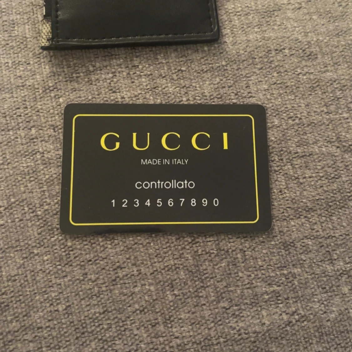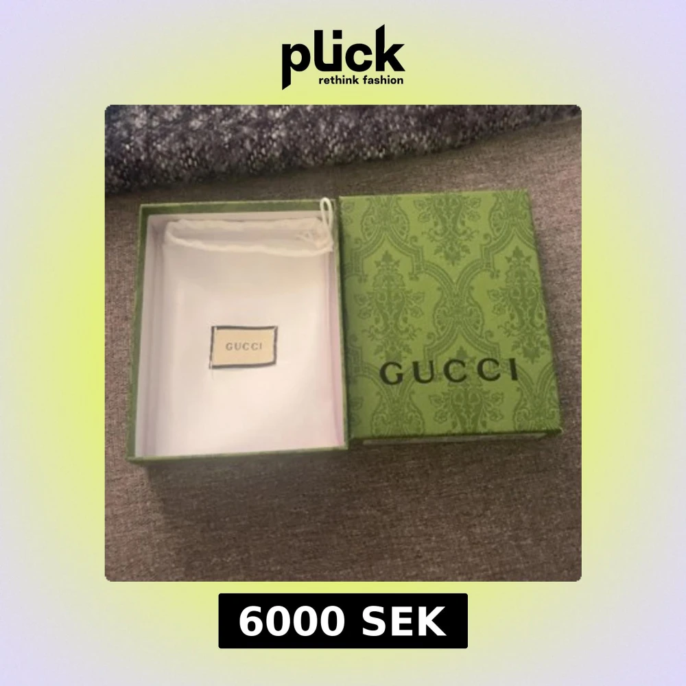 Snygg plånbok från Gucci med klassiskt GG-mönster och en cool röd, vit och svart orm på framsidan. Baksidan är i svart skinn med flera kortfack. Kommer med nyckelring och grön snodd, samt originalbox och äkthetskort.