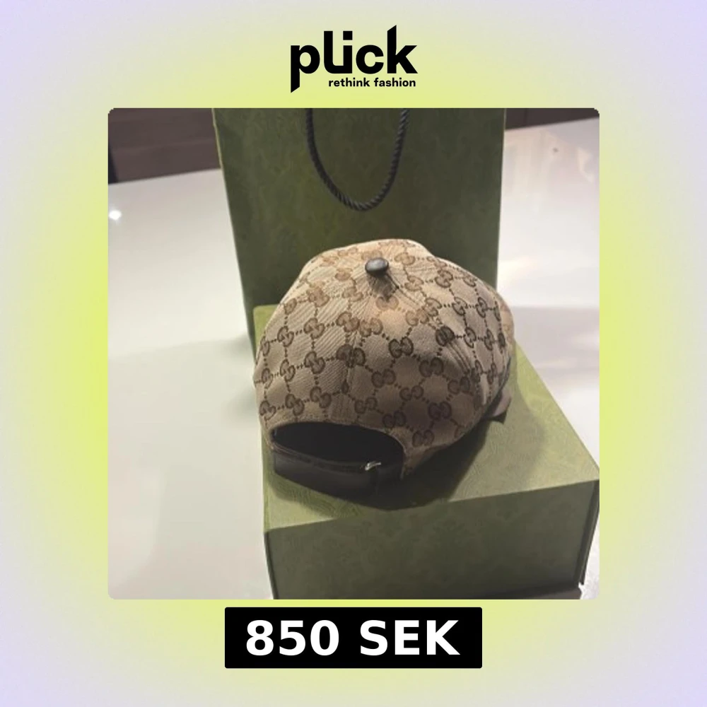 Exklusiv keps från Gucci i beige med klassiskt GG-monogram över hela kepsen. Justerbar rem i brunt läder baktill och ikonisk grön-röd rand på sidan. Tillverkad i Italien, material i bomull och läder. Perfekt för dig som vill sticka ut med lyxig streetstyle.
