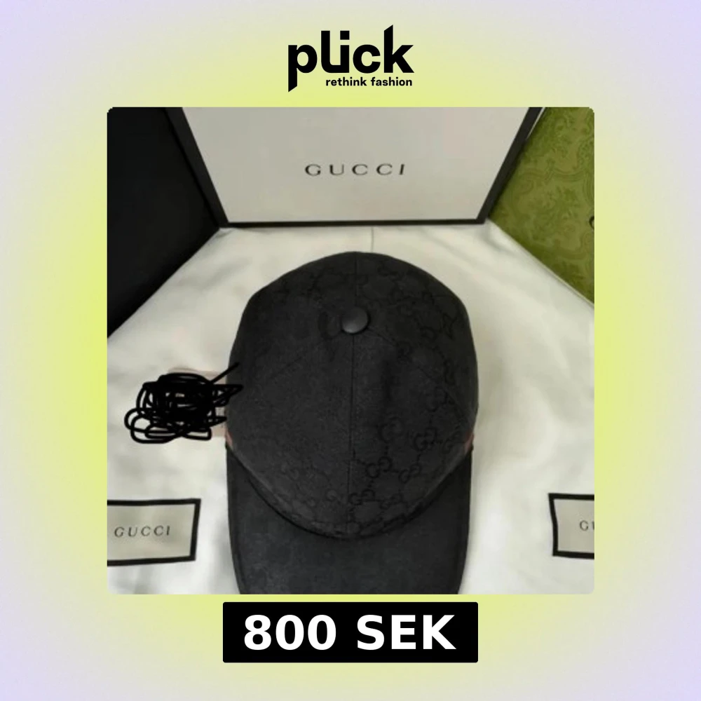 Snygg svart keps från Gucci med diskret GG-monogram över hela kepsen och klassisk grön-röd rand på sidan. Kepsen har böjd skärm och knapp på toppen, tillverkad i bomullsmaterial. Perfekt för dig som vill ha en lyxig streetstyle-accessoar.