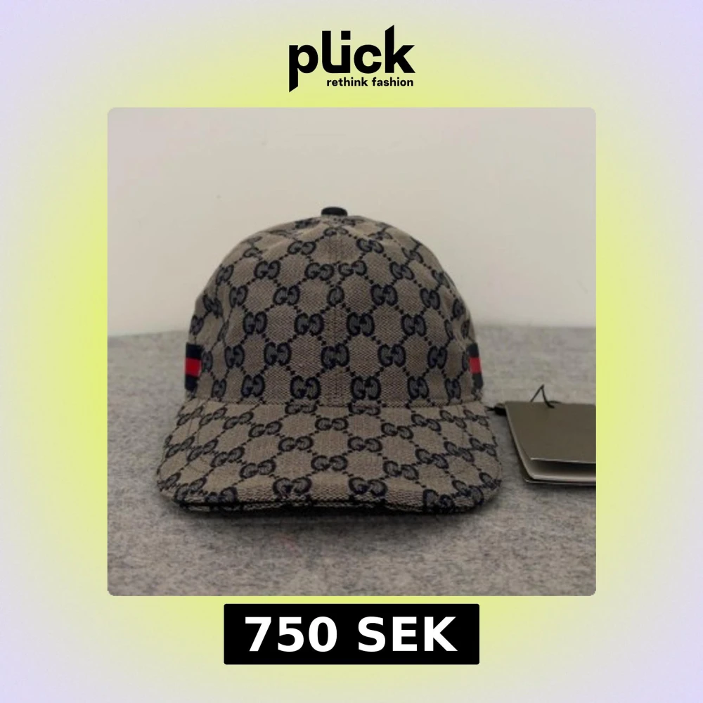 Säljer en beige keps från Gucci med klassiskt GG-monogram i mörkblått och röd-blå rand på sidan. Justerbar rem baktill i skinn. Perfekt accessoar för att lyfta din stil. Storlek ”M”