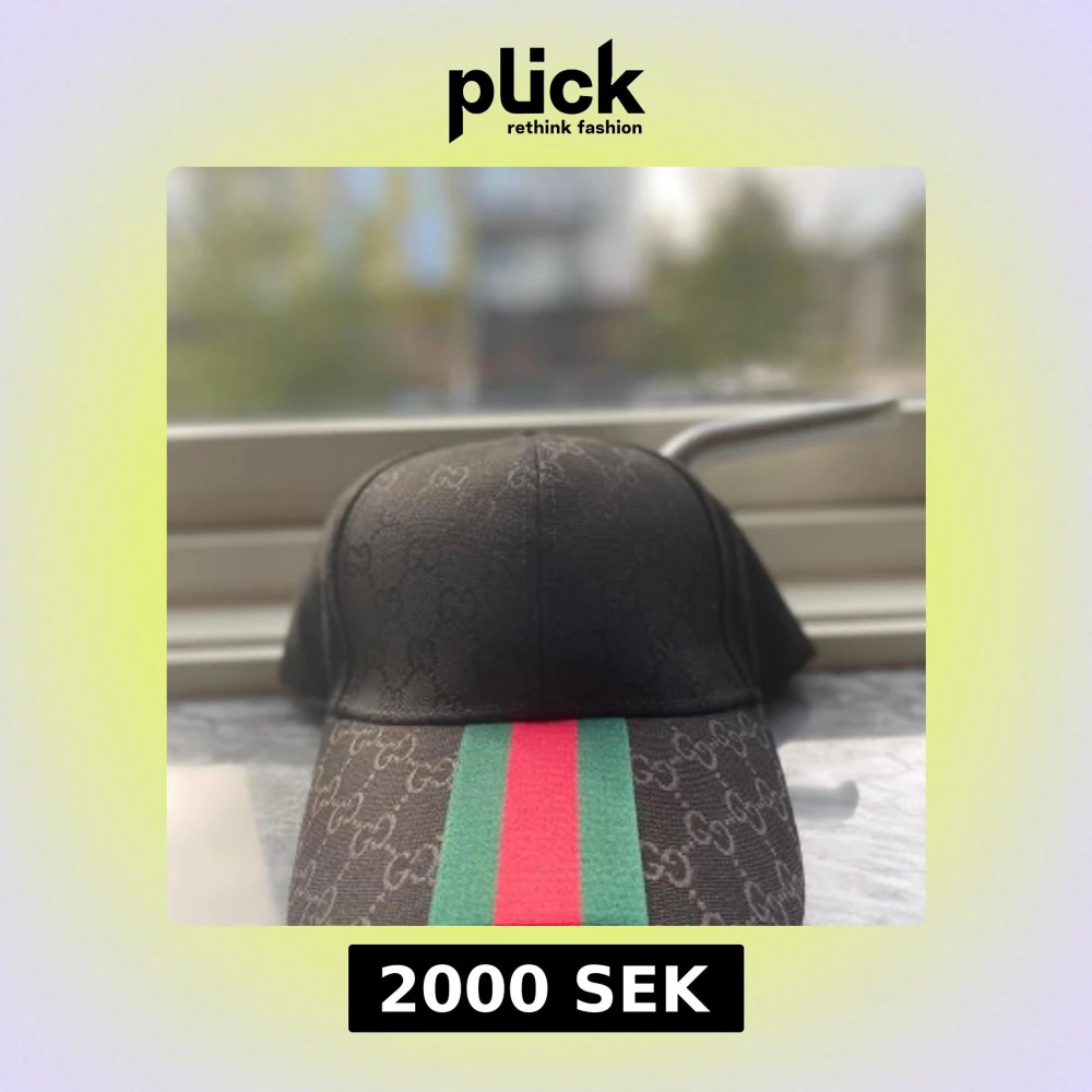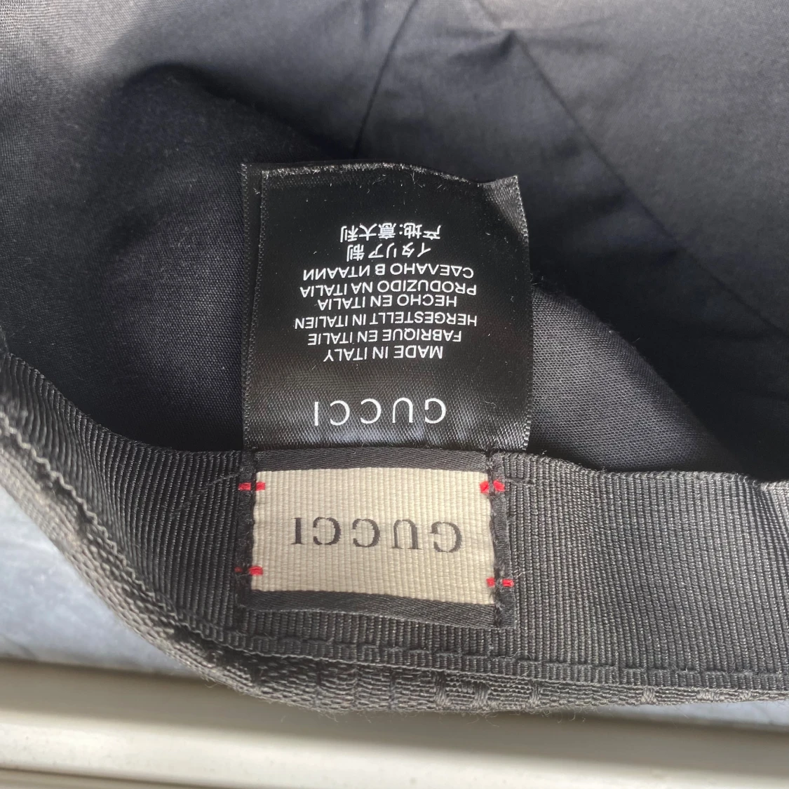 Snygg svart keps från Gucci med diskret GG-monogram över hela tyget och klassiska gröna och röda ränder framtill. Justerbart spänne i guld med Gucci-logga baktill. Tillverkad i Italien och i bomullsmaterial. Perfekt för dig som vill ha en lyxig och trendig accessoar.