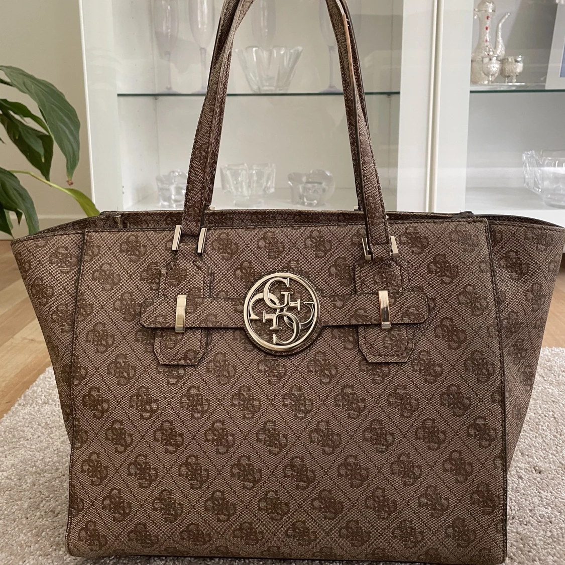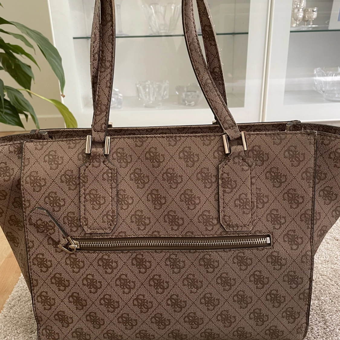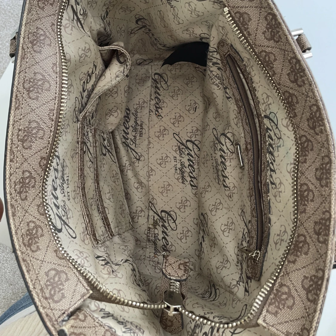 En brun/beige Guess väska i fint skick! Lite slitet på handtagen därav priset. 🌸