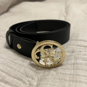 Guess bälte - Köpt för 600 kr i guess butiken initalien. Använt fåtal gånger, dock lite böjd där bak vilket oftas händer med bälten i liknande material. Storlek S☺️