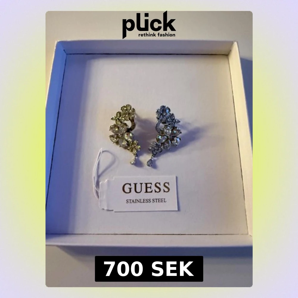 Guess örhängen i silverfärg med smyckeskristall i material ädelstål, org. pris 799kr, säljs 700kr eller närmast bud💖 aldrig använda så i nyskick😊💕 vid frågor, skicka meddelande🥰