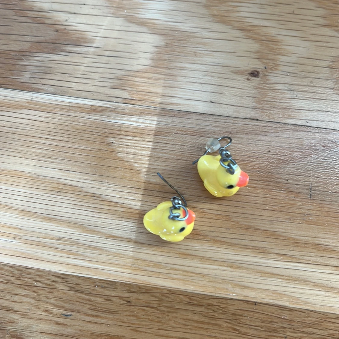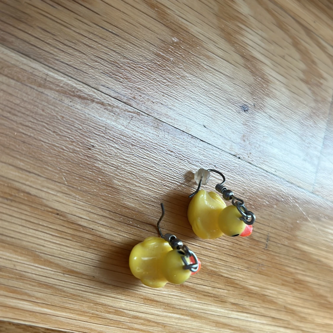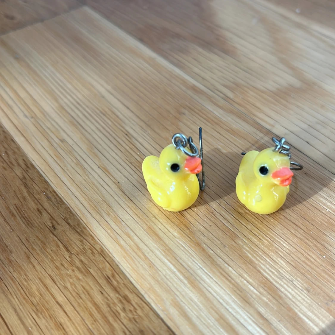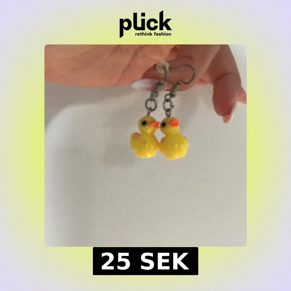 Supergulliga örhängen formade som små gula ankor med orange näbb och svarta ögon. Perfekt för dig som vill sticka ut med ett lekfullt och unikt smycke. Krokar i metall och själva ankorna är gjorda av plast. Säljs som ett par. Jag själv är nickelallergiker och har inte haft några problem.