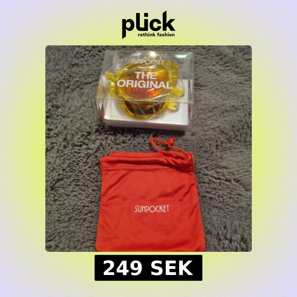 Snygga runda solglasögon från Sunpocket med transparent gul båge och spegelglas i orange/röd ton. Kommer med originalförpackning och röd Sunpocket-påse. Perfekta för soliga dagar och ger en cool retrovibe. Original 599kr.