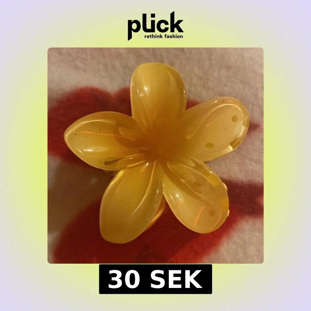 Snygg gul hårklämma formad som en blomma. Perfekt för att sätta upp håret med stil. Klämman har en stark fjäder och är lätt att använda.