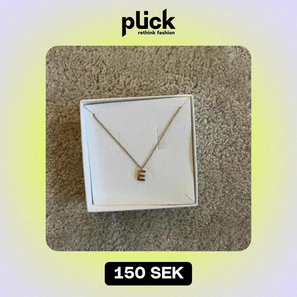 Guld halsband med bokstaven ”E” på. Från Edblad