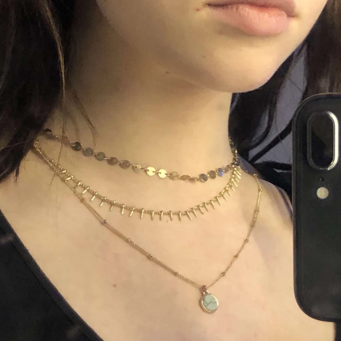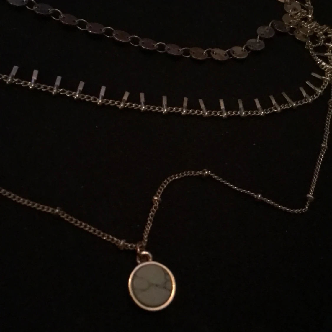 Tre olika guldhalsband i ett! OBS INTE ÄKTA GULD. I bra skick och använts några få gånger❤️