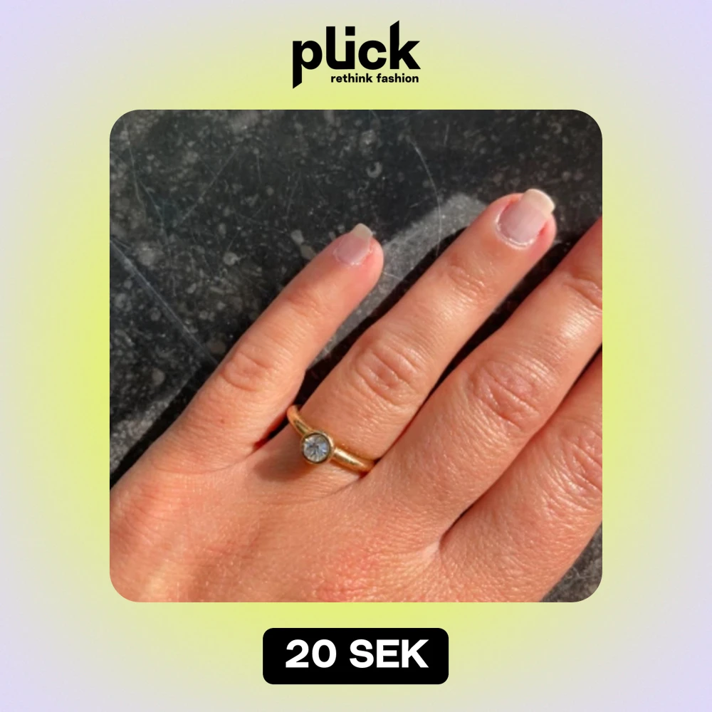 Guldfärgad ring, ungefär 1,6cm i diameter. Fint skick men lite repig, se bild!