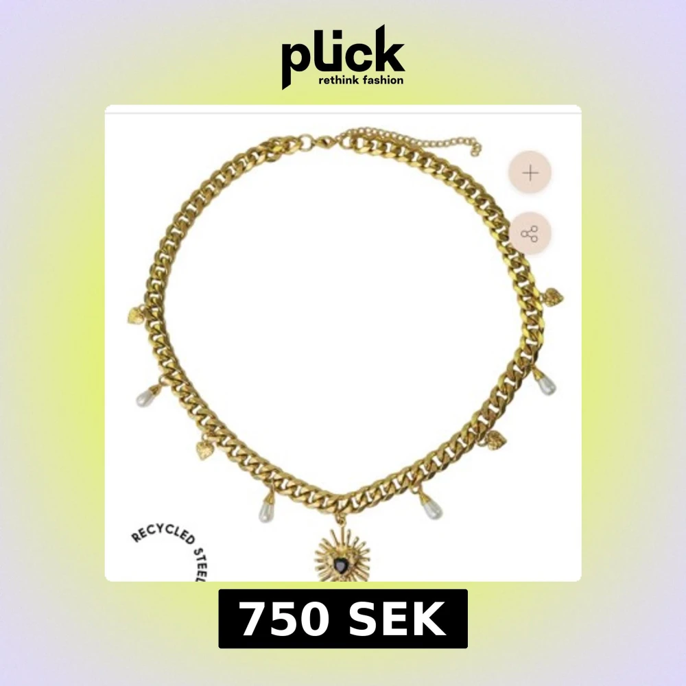 Chunky guldhalsband med kedja, dekorerat med små hjärtan och droppformade pärlor. I mitten hänger en solformad berlock med svart hjärta. Perfekt statement-piece för dig som vill sticka ut.