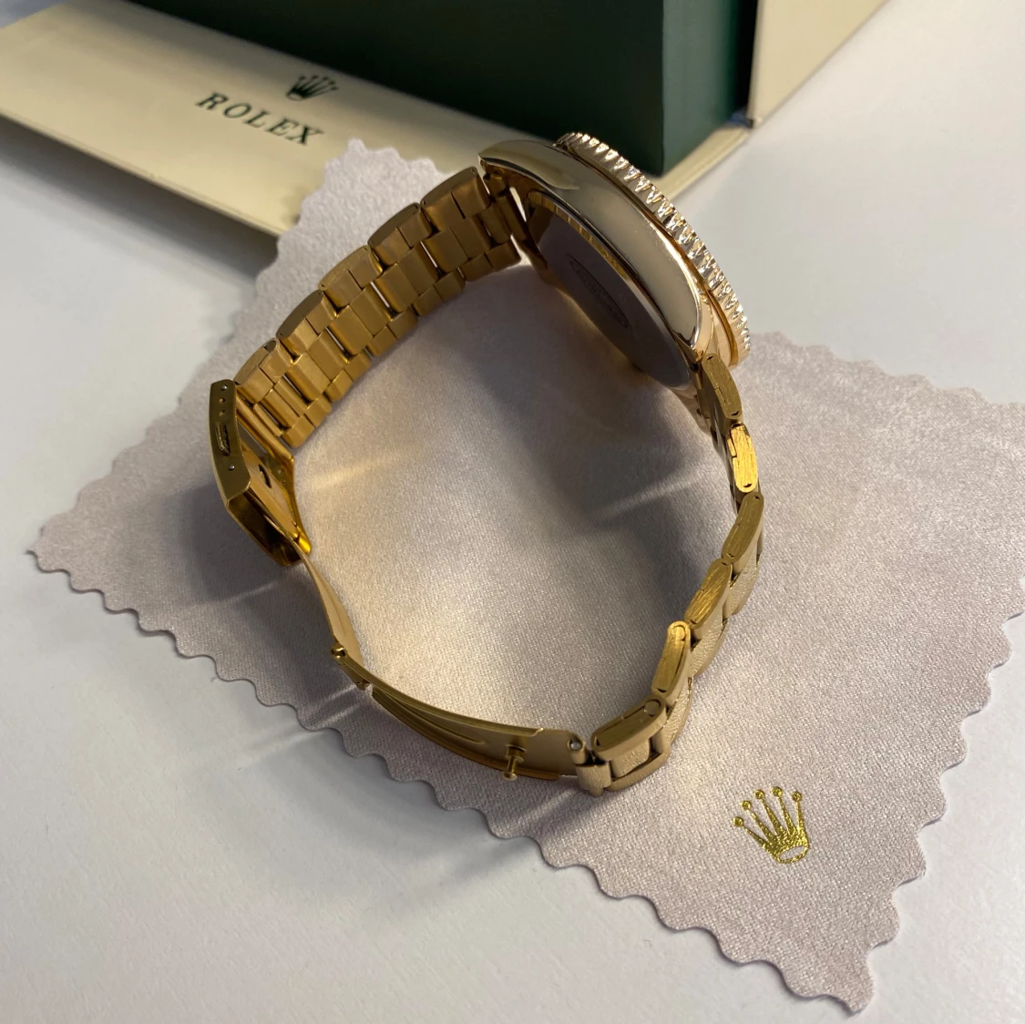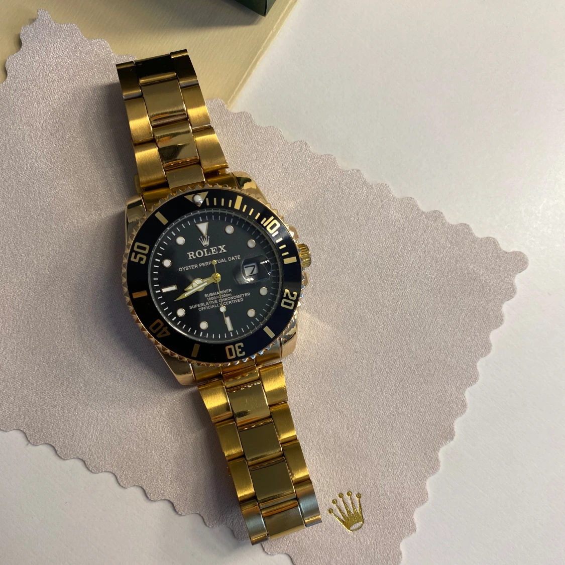 Helt ny klocka i guldpläterat rostfritt stål. Fungerar som den ska inga problem alls.