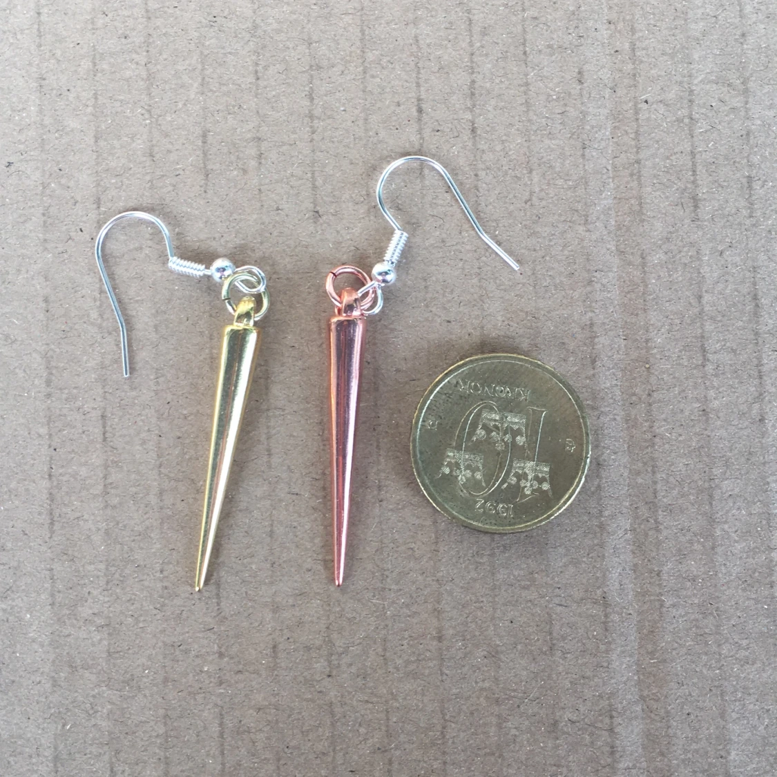 coola örhängen i två olika färger! coppar eller guld färgat🤩 har 4 guldiga och 3 coppar! säljer en för 25 kr eller ett par för 40kr inkl frakt! 5/10kr går till valfri organisationen som jag swishar, bevis skickas till köparen!