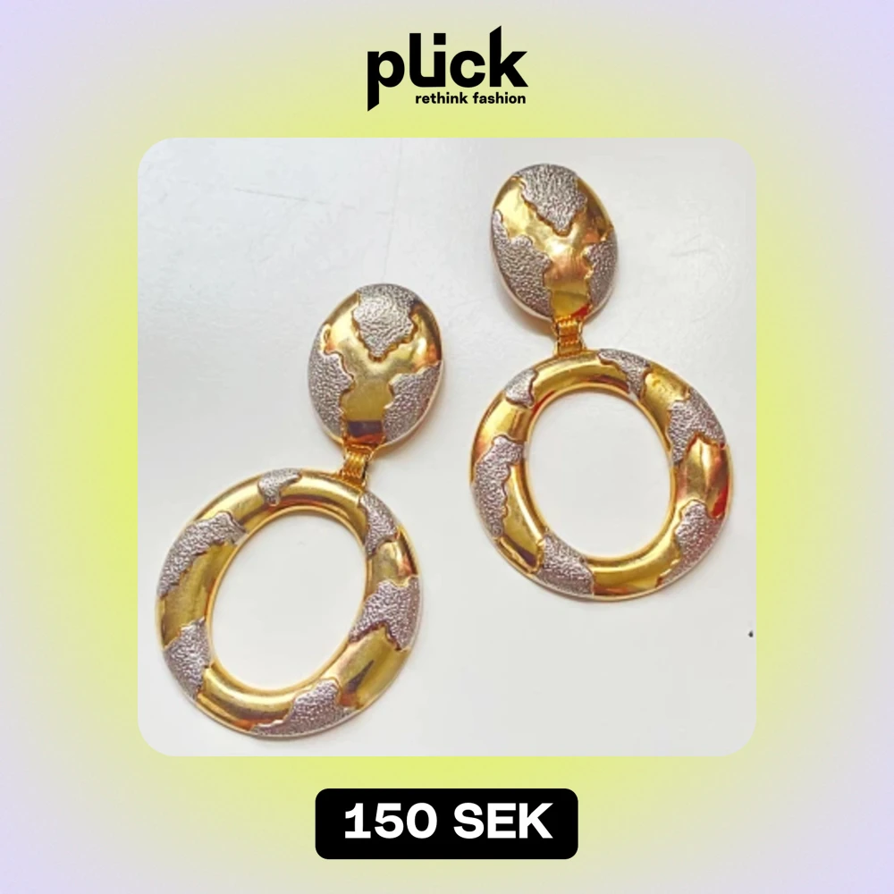Säljer ett par vintage stora och unika clipsörhängen i guld och silver. De har en oval form med en cool textur som ger dem en extra dimension. Perfekta för att göra ett statement på festen! 🥳Okänd metall