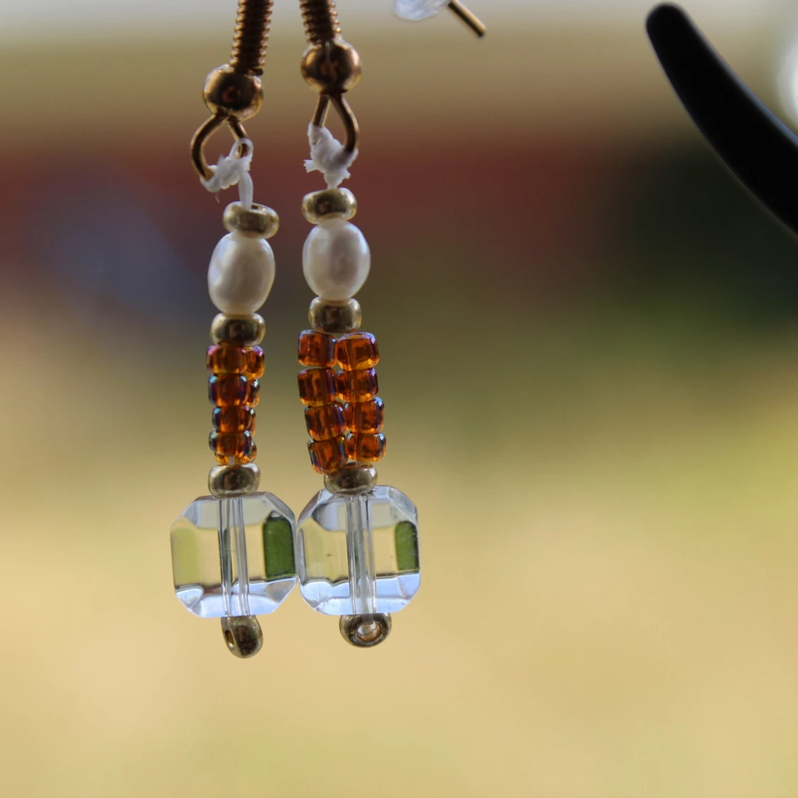 Handgjorda örhängen med pärlor och glaspärlor
