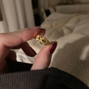 Den köptes för inte så länge sedan, där med har den inte används så mycket. Det är en silver ring dränkt i ett tjockt lager guld. Original lådan finns kvar och om någon vill köpa den skickas ringen i den.