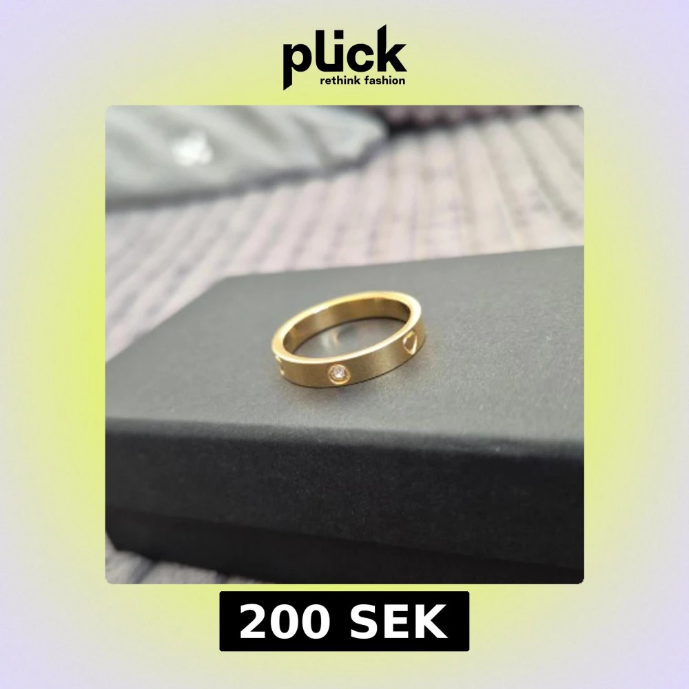 Snygg stol guld ring med en infattad klar sten och dekorativa hjärtor runt om. Perfekt accessoar för att lyfta din stil.