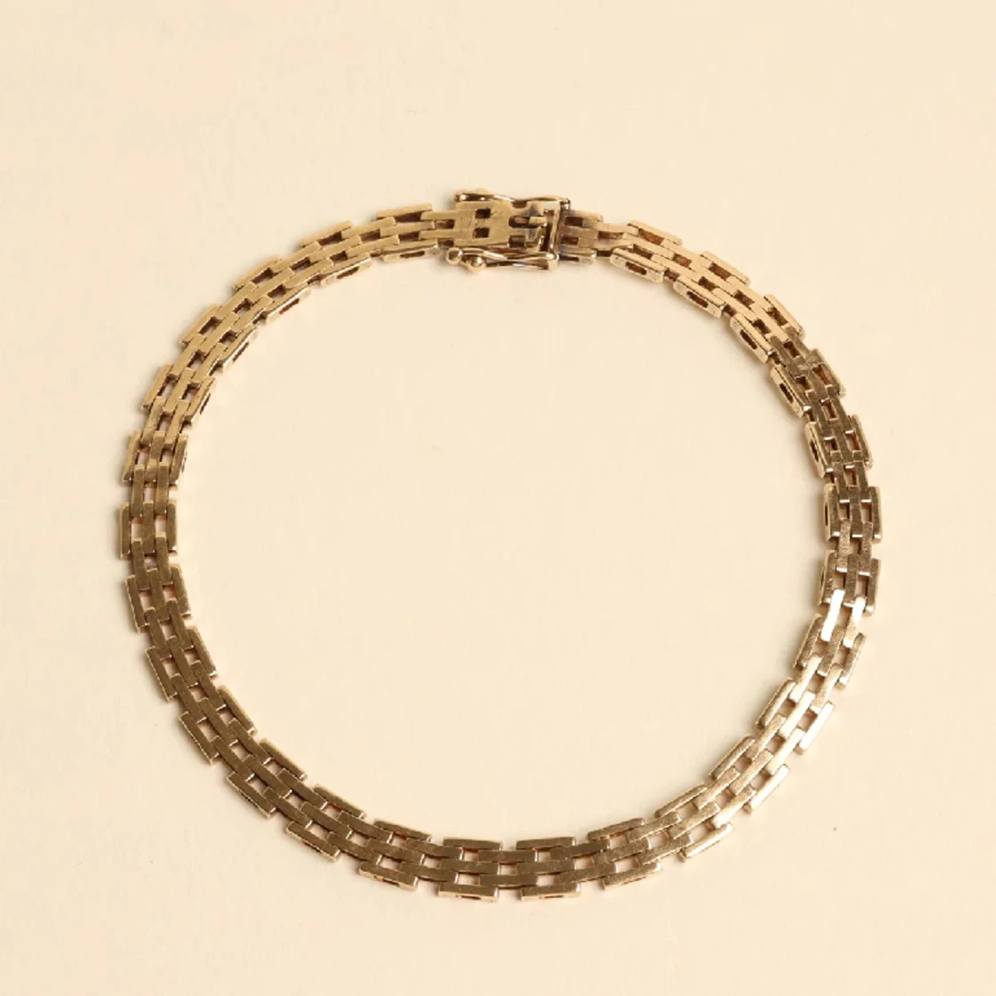 Mursten armband i 14 karat Guld, som väger 9.3 g. Armbandet är 19.5 cm inkl. lås och är 4.9 mm brett.