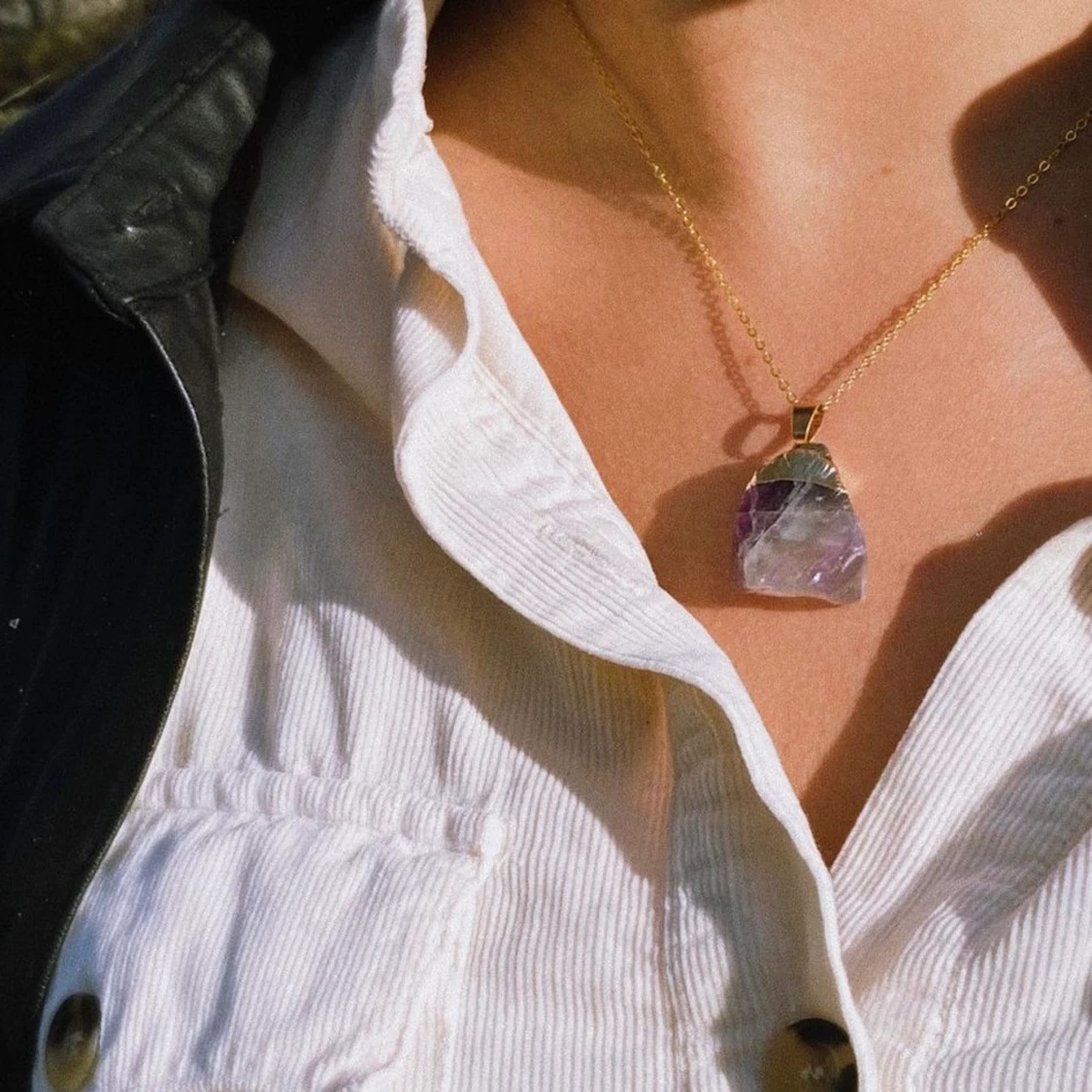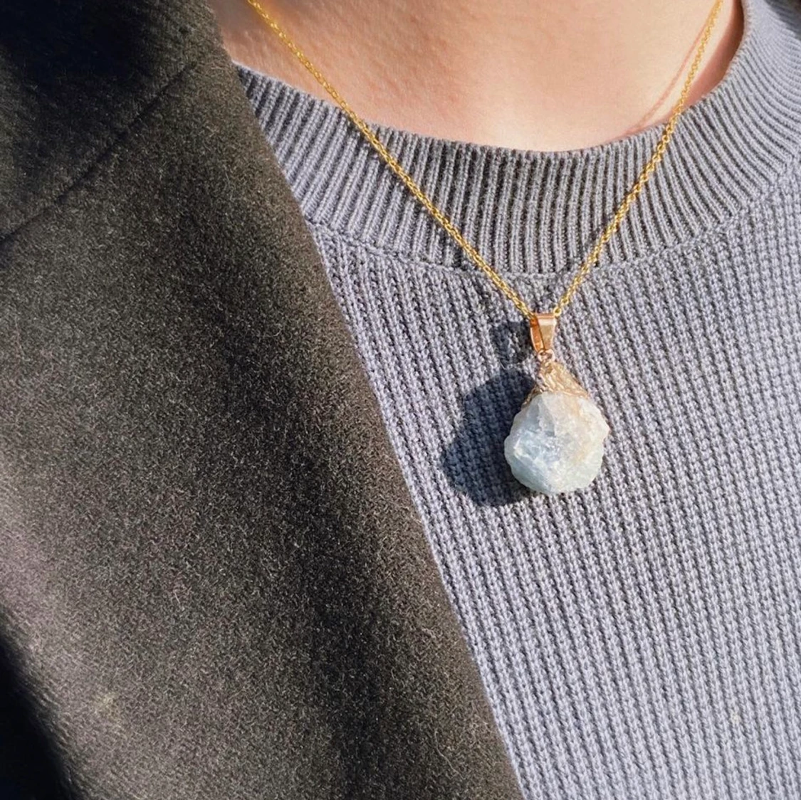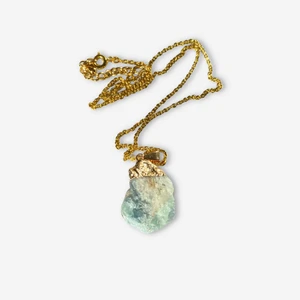 Fluorit Sten med guldpletering, 44cm + förlängningskedja. Varje sten är individuell och varierar i olika nyanser.