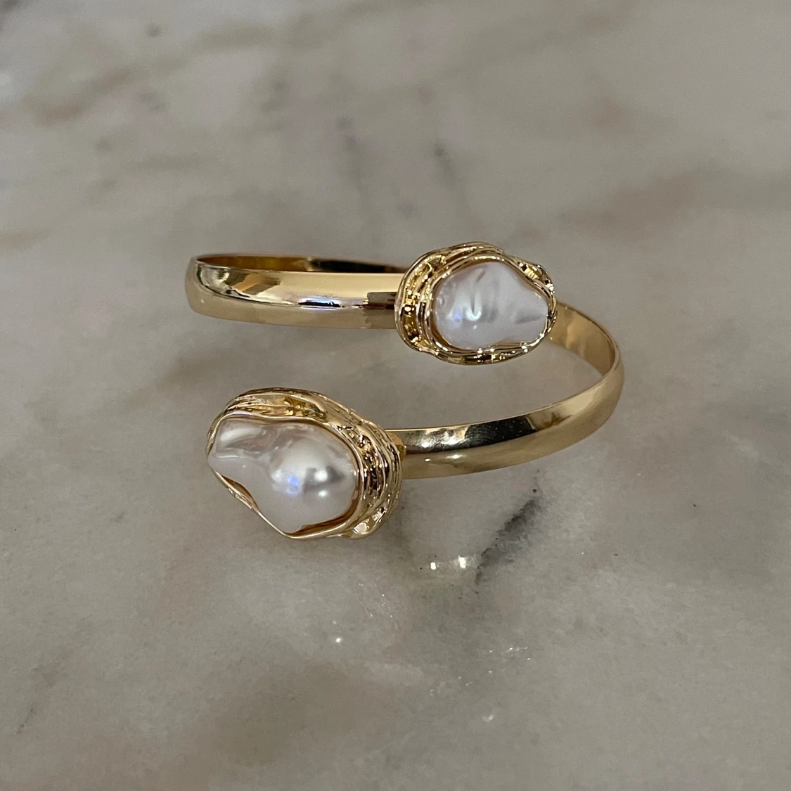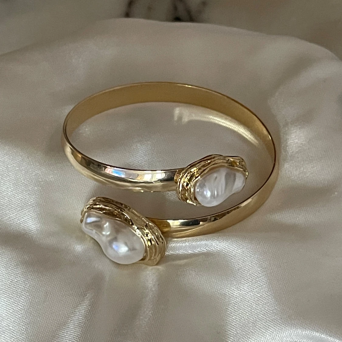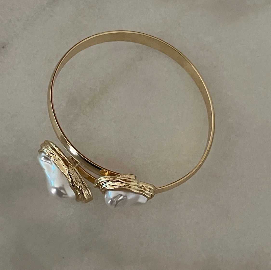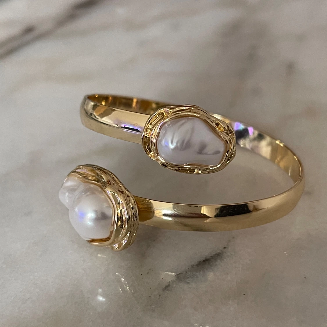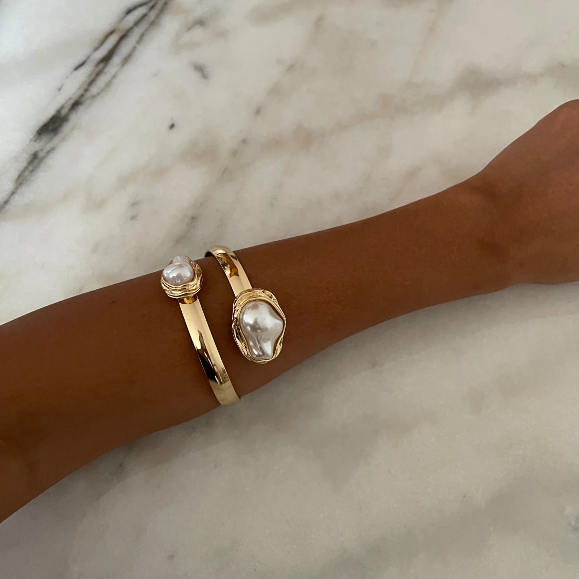 Fint guldigt armband med pärl liknande stenar, passar alla tillfällen.