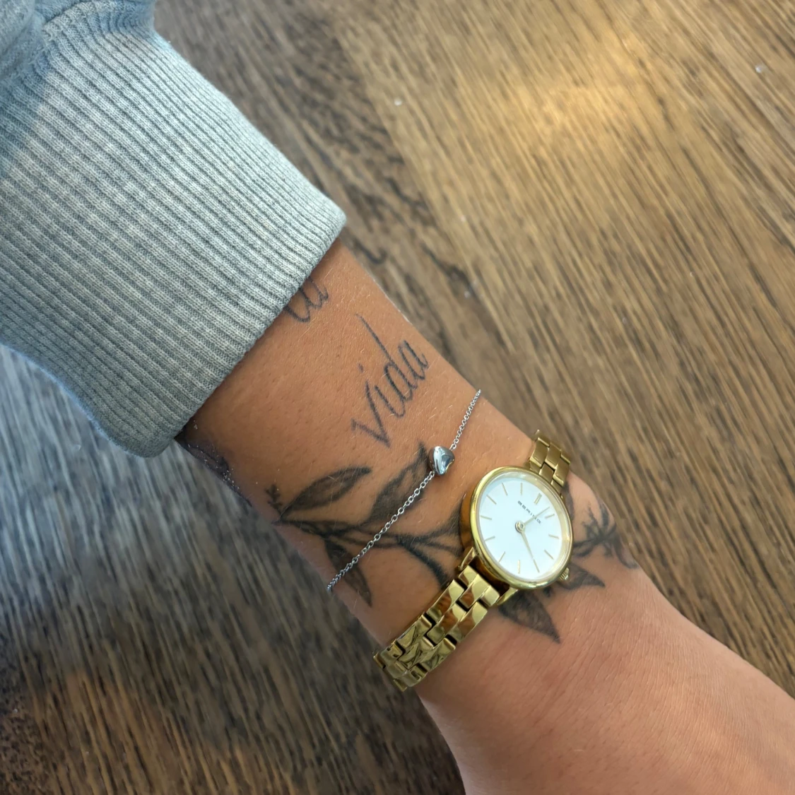 Säljer en snygg guldfärgad klocka med vit urtavla, Perfekt för både vardag och fest💕nyligen köpt för 1699💕