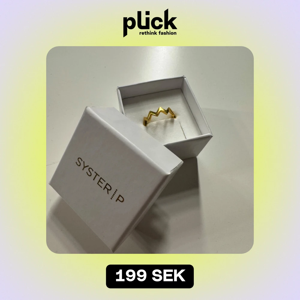 Snygg guldfärgad ring från Syster P med ett unikt, zickzack-mönster. Perfekt för att ge en modern touch till din outfit. Ringen kommer i en elegant vit ask, vilket gör den till en fin presentidé. Passar både till vardags och festliga tillfällen.