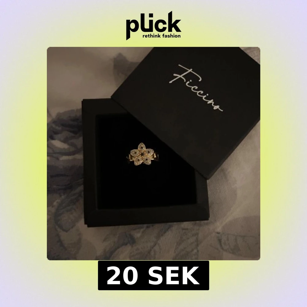 Elegant guldfärgad ring med en vacker blomdesign prydd med glittrande stenar. Perfekt för att lägga till en touch av glamour till din look.