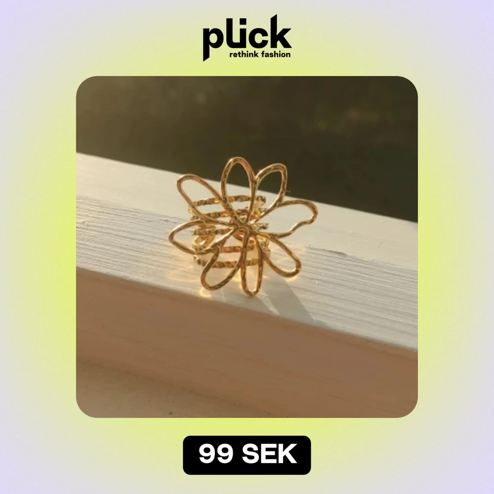 En elegant guldfärgad ring med en unik blomdesign. helt oanvänd. justerbar storlek