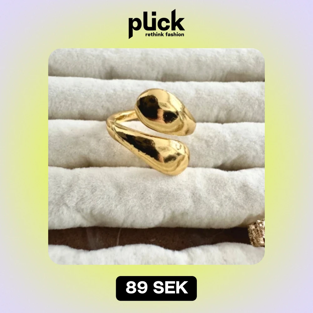Säljer en unik och stilren guldfärgad ring med en cool droppformad design. Ringen är justerbar och passar perfekt för både vardag och fest. Den glänsande ytan ger en lyxig känsla. Perfekt för att ge din outfit det där lilla extra! ✨