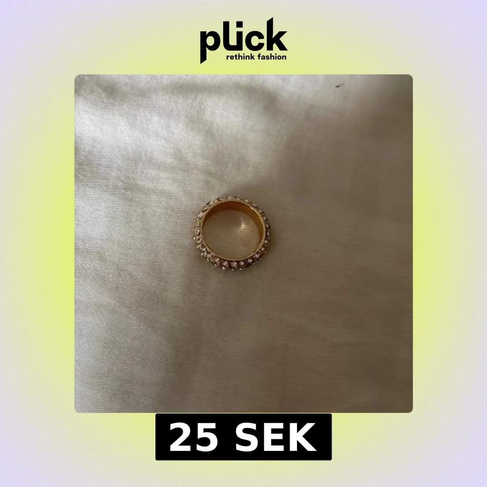 Snygg guldfärgad ring med två rader gnistrande stenar runt hela bandet. Ringen har en chunky känsla och ger ett lyxigt intryck med sina glittrande detaljer. Perfekt för dig som vill sticka ut och addera lite extra bling till din stil.