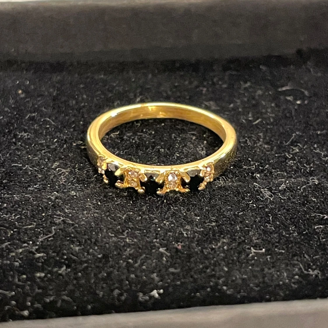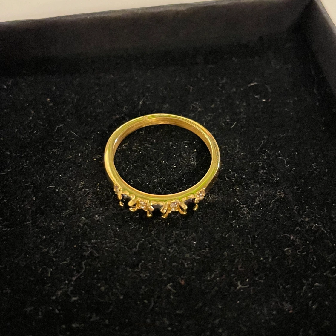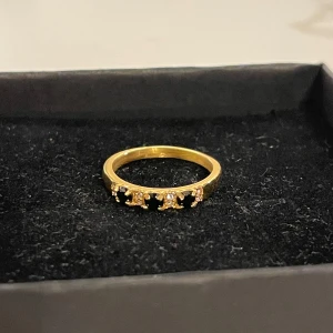 Elegant guldfärgad ring med små gnistrande stenar på ovansidan. Perfekt för att ge en touch av glamour till din stil. Ringen har en enkel och stilren design som passar till många tillfällen. Inre diameter är 18 mm.