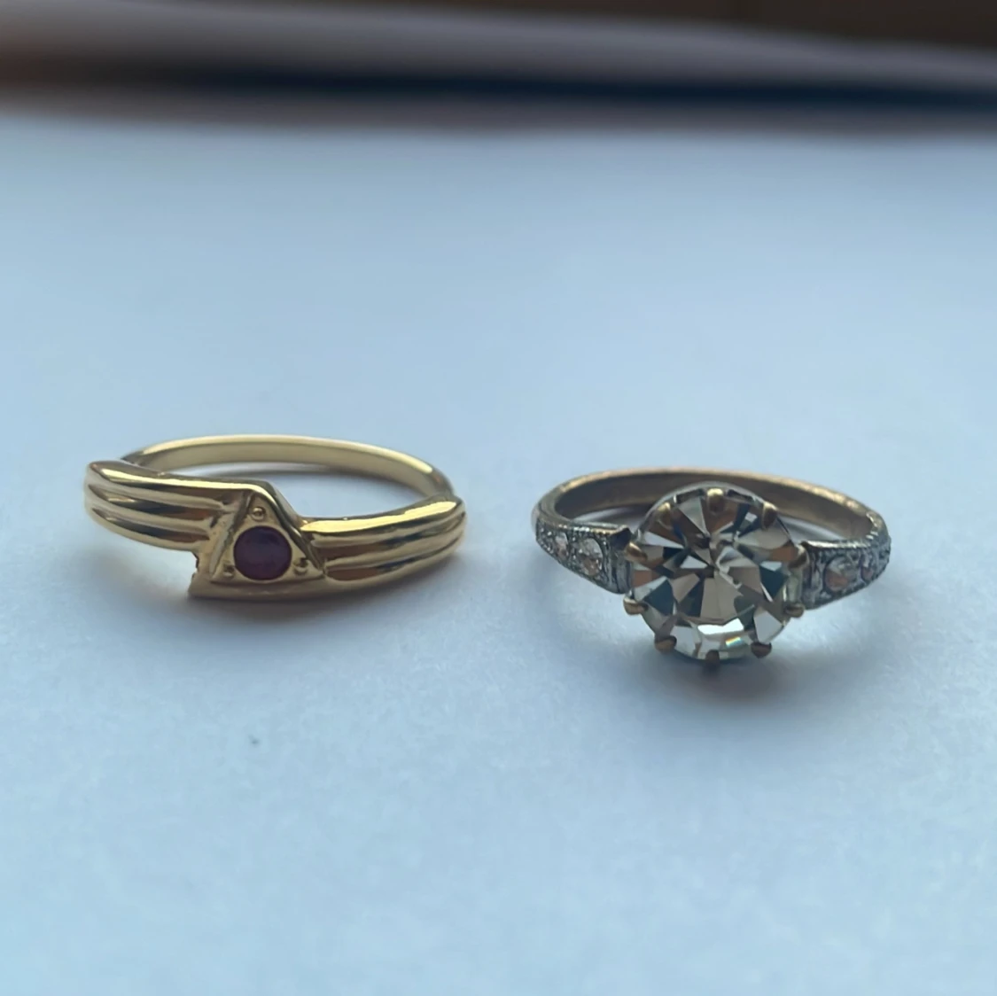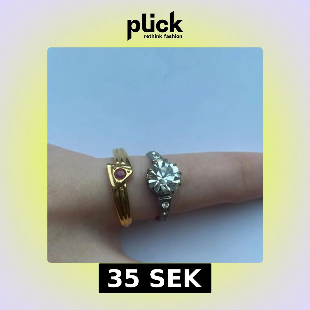 2 guldfärgade ringar. Den med stenar på är i slitet skick, men ändå jättefin💕