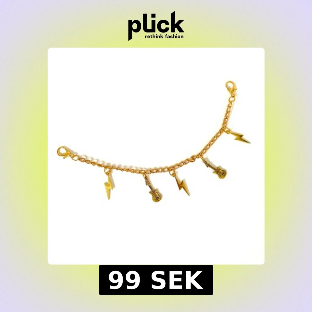 Guldfärgat handgjort accessoarsmycke med hängande blixtar och gitarrer. As najs att hänga på väskan eller annan accessoar ⚡️