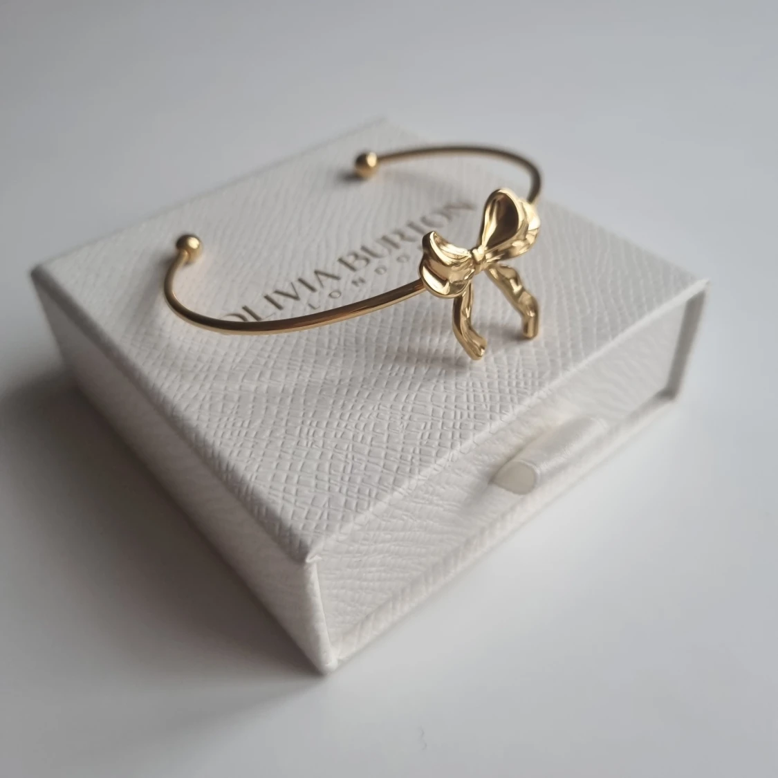Superfint armband från i guldfärg med en söt rosett framtill. Stilren och feminin design som verkligen sticker ut på handleden. Perfekt accessoar för dig som gillar detaljer med lite extra charm. Lådan ingår ej.