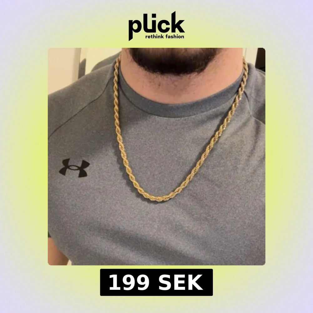 Snyggt guldfärgat halsband med tvinnad kedja som ger en cool och modern vibe. Perfekt för att lyfta din outfit och ge lite extra bling. Passar både till t-shirt och skjorta, och är ett måste om du gillar statement-smycken. 60 CM / 6 MM rostfritt stål