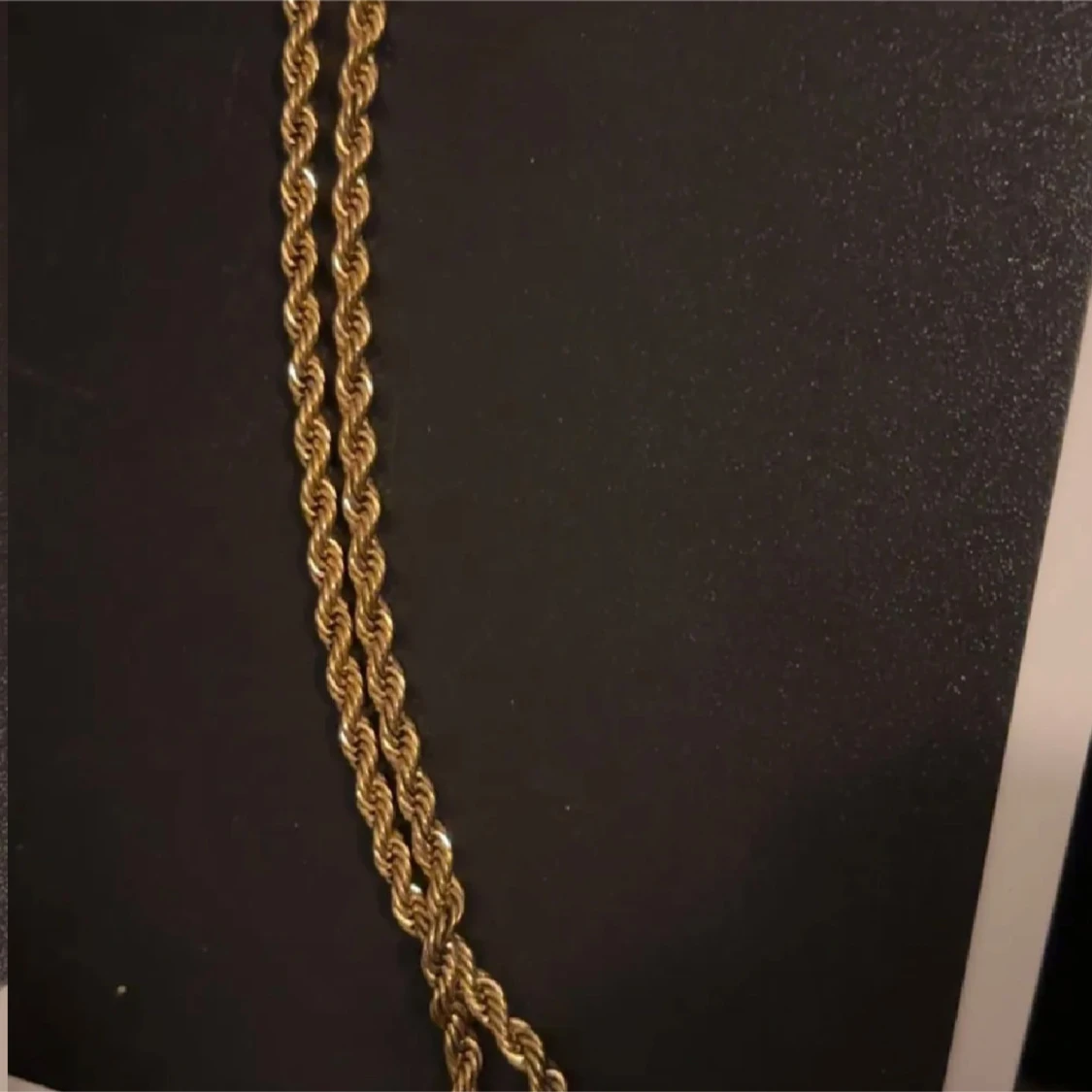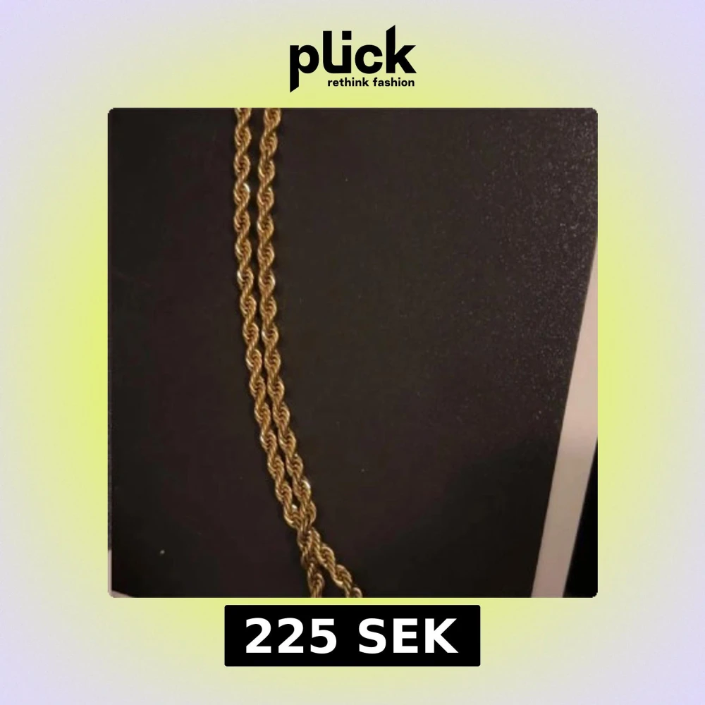 Säljer ett snyggt guldfärgat halsband med tvinnad kedja. Kedjan har en klassisk karbinhake och känns riktigt trendig och stilren. Perfekt för att lyfta vilken outfit som helst.