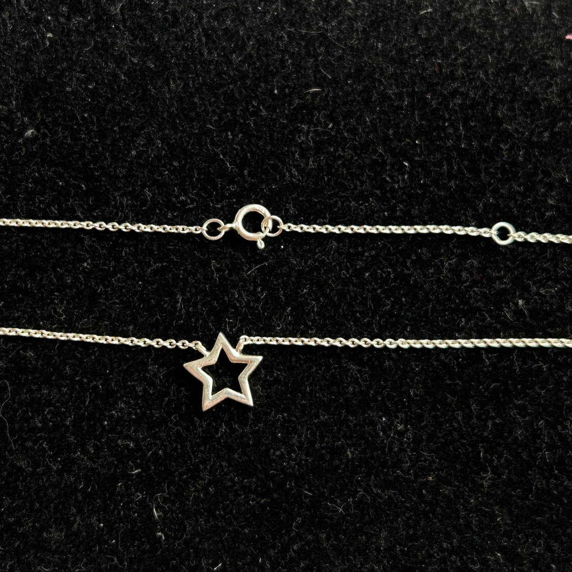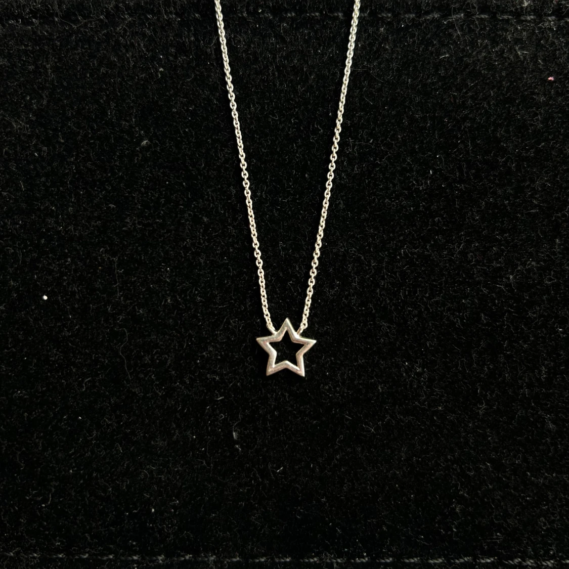 Snyggt halsband i äkta silver med en öppen stjärnformad berlock. Kedjan är tunn och smidig, perfekt för dig som gillar stilrena smycken med en liten twist. Passar till alla tillfällen och är lätt att matcha med andra accessoarer. 42-46cm