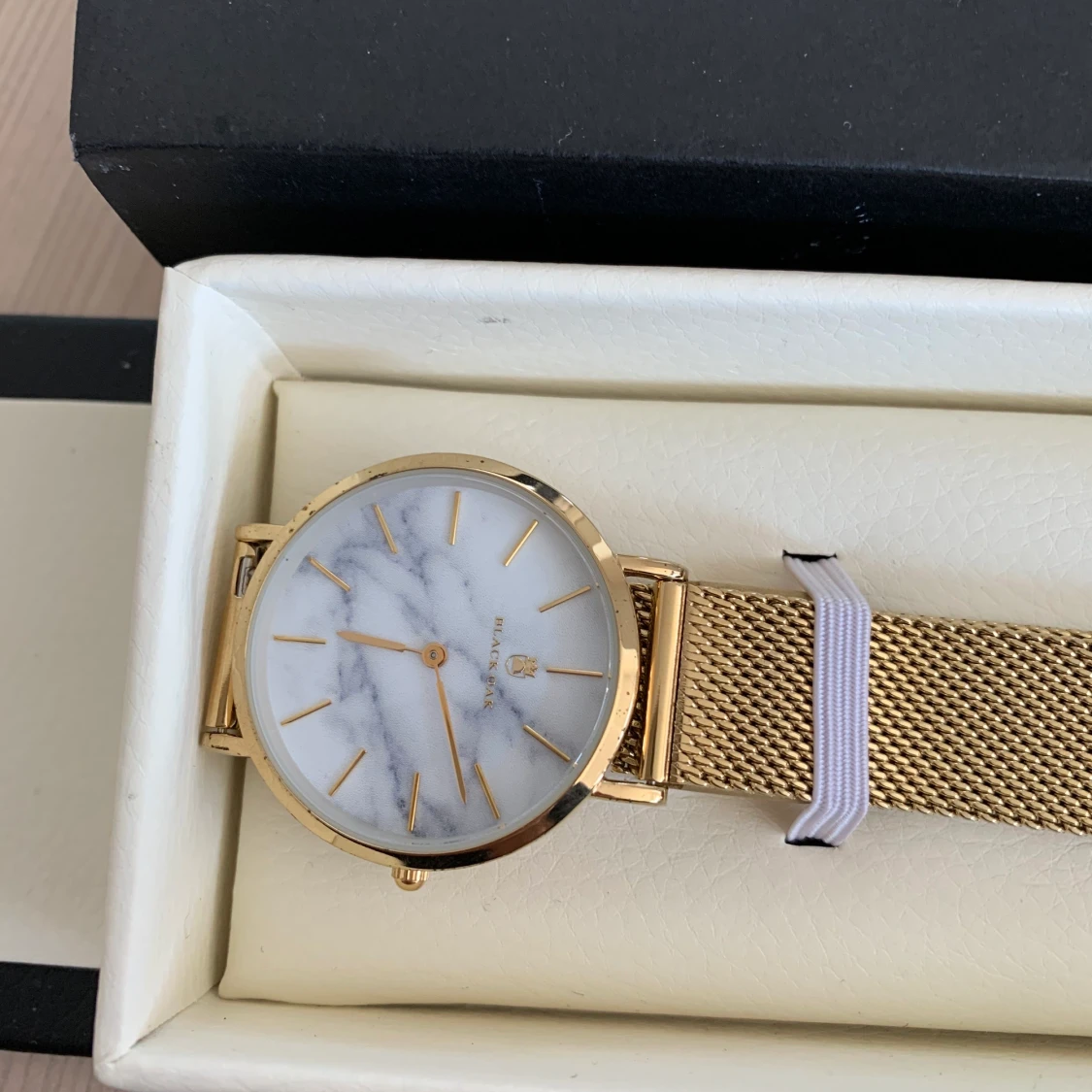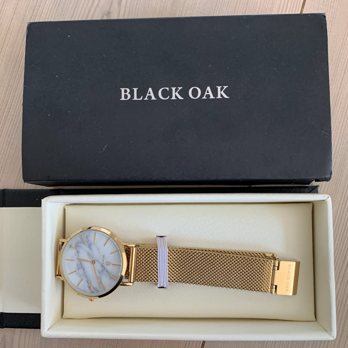 För tillfälligt borta! marmor och guld klocka från black oak, går att justera, bandet är 22cm lång, inga tydliga defekter. pris diskuteras tillsammans (+frakt)