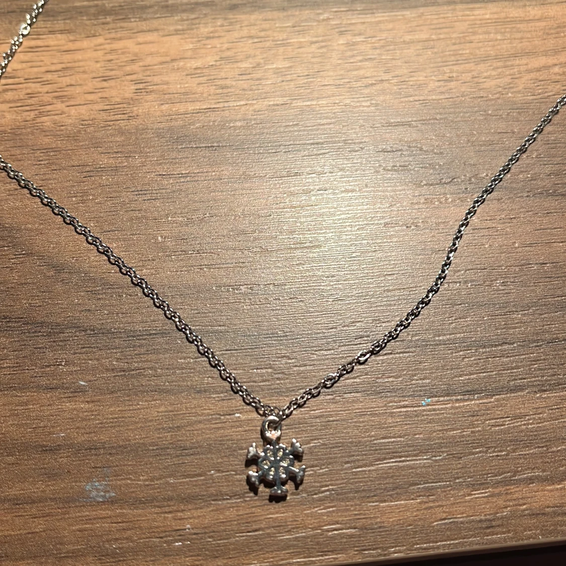 Elegant silverhalsband med en liten snöflinga berlock. Perfekt för att lägga till en subtil glans till din outfit. Kedjan är tunn och smidig, vilket gör den bekväm att bära hela dagen. Inte äkta silver