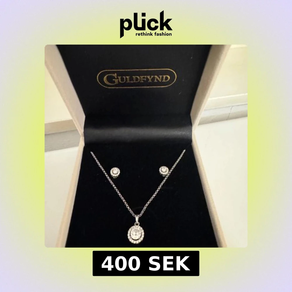 Säljer ett helt nytt smyckeset från Guldfynd med ett halsband och matchande örhängen i silverfärg. Både halsbandet och örhängena har runda hängen med gnistrande stenar omgivna av små kristaller för extra bling. Säljs då jag fått de i present och då jag inte använder silversmycken. ÄKTA SILVER! 😊