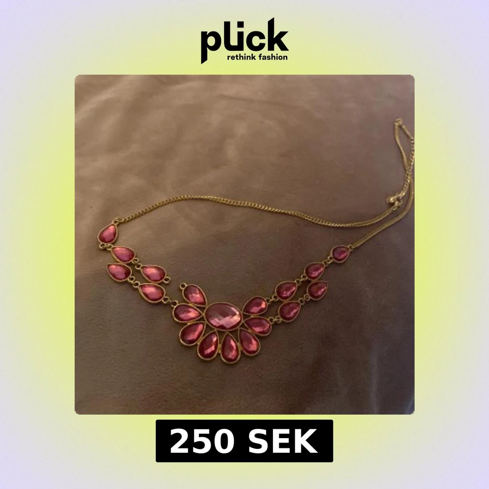 Elegant guldhalsband med stora rosa stenar i en blommig design. Kedjan är tunn och smidig, vilket ger en fin kontrast till de iögonfallande stenarna. Perfekt för att ge en färgklick till din outfit.