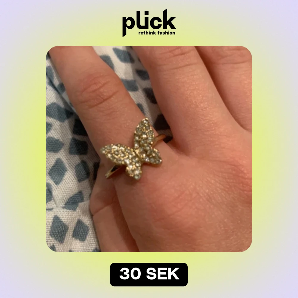 Nu säljer jag denna guldiga ringen med en fjäril på och små diamanter. Storlek XS och jag säljer endast denna för att den är lite för stor. Den är oanvänd så därför i väldigt bra skick.