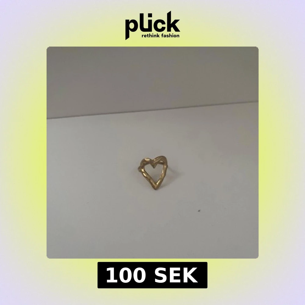 Säljer en snygg ring i guldton med öppen hjärtformad design. Ringen har en lite ojämn, organisk form som ger den en unik och trendig look. Perfekt för dig som vill ha ett statement-smycke med romantisk vibe.