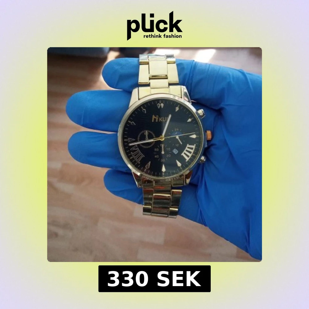 Snygg klocka från Miku med guldig och svart urtavla. Klockan har romerska siffror, flera dekorativa subdials och datumvisning. Metallarmbandet ger en lyxig känsla och den svarta urtavlan gör att detaljerna sticker ut.