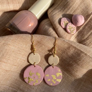 Rund örhänge med guldig detalj✨ gjord av polymer lera som väger väldigt lite🌸 rostfritt stål☀️ Handgjord