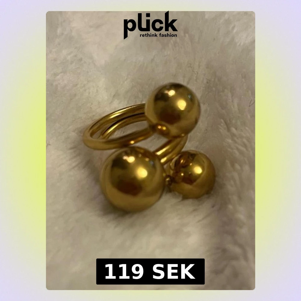 Trendig guldfärgad ring med dekorativa kulor i olika storlekar som ger ett lekfullt men stilrent uttryck ✨ En perfekt statement-ring som sticker ut men ändå är lätt att matcha. ✨ Modern & trendig ✨ Unik kuldesign ✨ Statement men minimalistisk I mycket fint skick 🤍 Skickas snabbt 📦 Skriv gärna vid frågor eller om du vill ha fler bilder! #ring #guldring #statementring #trendigt #smycken #plick #aesthetic #fashion
