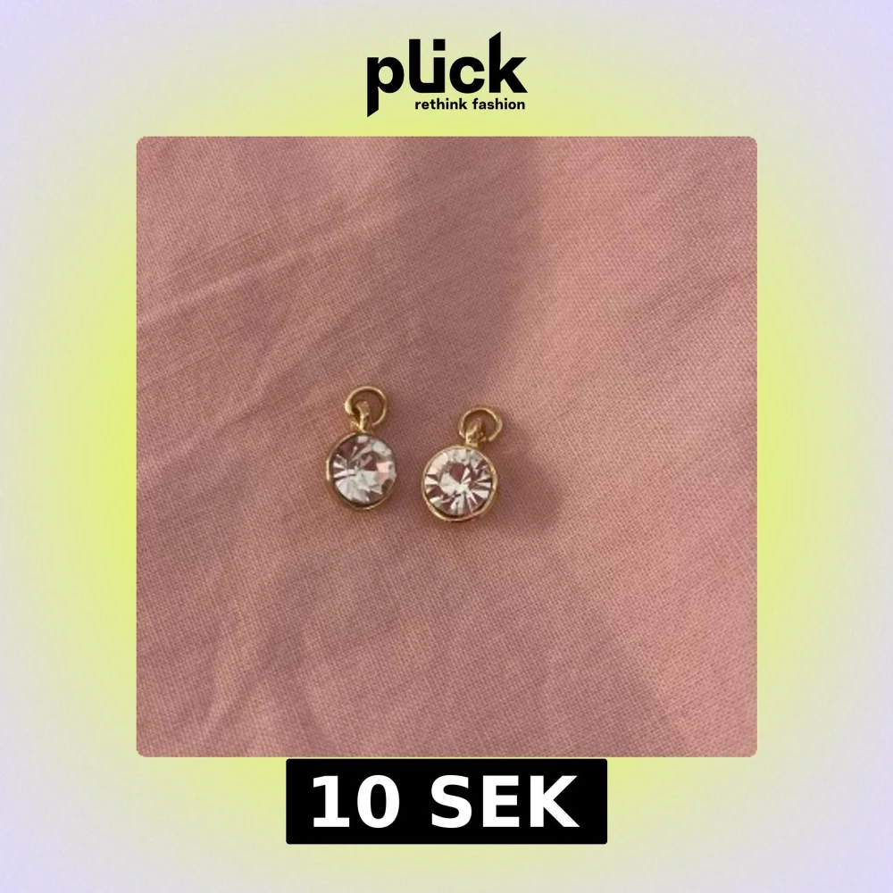 Säljer ett par runda berlocker med gnistrande klara stenar infattade i guldfärgad metall. Enkla men ändå riktigt snygga och perfekta för att ge lite extra bling till din look!!! ✨💎✨💎✨💎