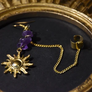 Solörhängen med ametist (går att customiza kristall på min etsy) och en earcuff med kedja. Nickelfria metaller och krokar. (Ett vanligt örhänge ingår men endast en med earcuff)